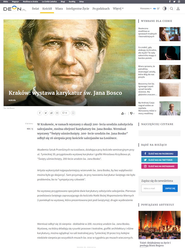 św. Jana Bosko. Wystawę, na którą składają się rysunki prasowe