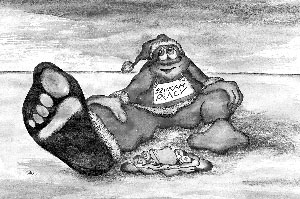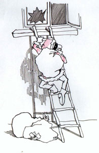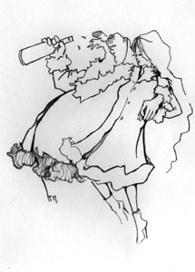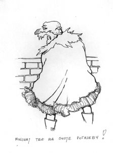 faceta w czerwonych majtkach kubraczku i w kapturku