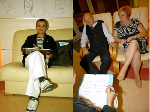 na imprezach branżowych, rysowanie karykatur na