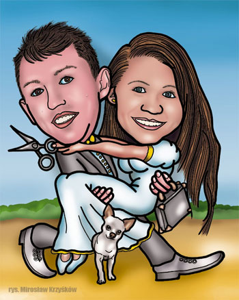 rysowanie karykatur na weselach, rysowanie karykatur